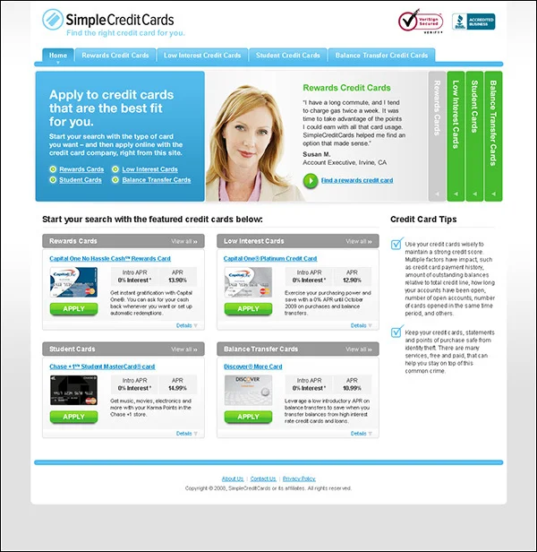 Supported SEM testing and business research for new product offering by designing an identity and shopping site for selecting and applying for credit cards.