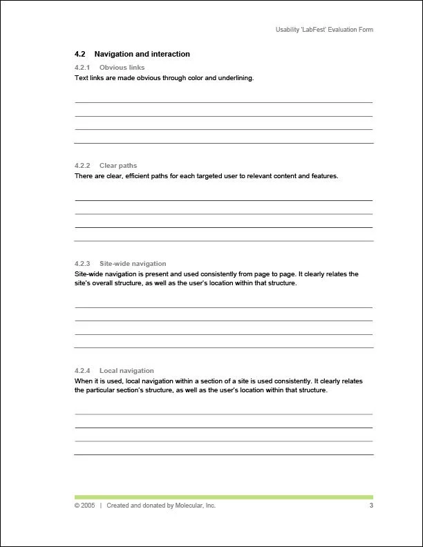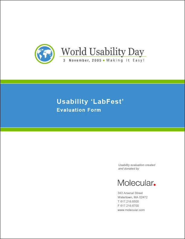 Created an evaluation form to be used by event participants during World Usability Day 2005 at the Museum of Science, Boston. The form enabled participants to quickly evaluate the usability of solutions that were shared at the event.