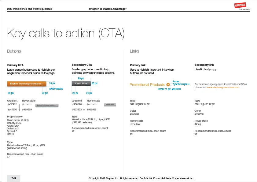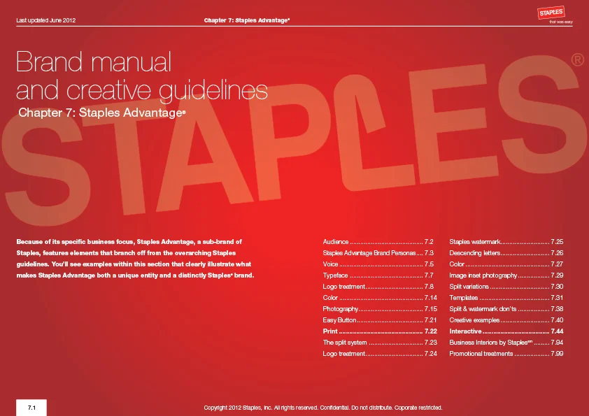 Provided direction to the establishment and ongoing support of Staples Advantage brand guidelines. These guidelines aligned designers and writers, as well as outside vendors, on the brand's personality, standards and elements.